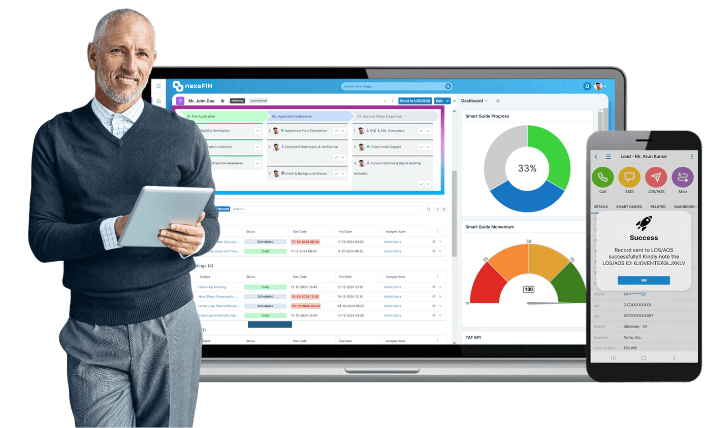 Contemporary banking is based on an integrated network of financial infrastructures and digital platforms. nexaFIN, developed on SugarCRM, integrates in a seamless fashion with core banking platforms, loan management systems, underwriting engines, KYC/AML compliance solutions, credit card management, BI & analytics software, and others. By integrating with account opening systems, document management, claims processing, and mobile banking solutions, nexaFIN provides an integrated customer view, workflows, and automated compliance monitoring. This broad integration ability enables banks to maximize operational efficiency, enhance risk management, and provide enhanced customer experiences at the same time while being fully regulatory compliant.