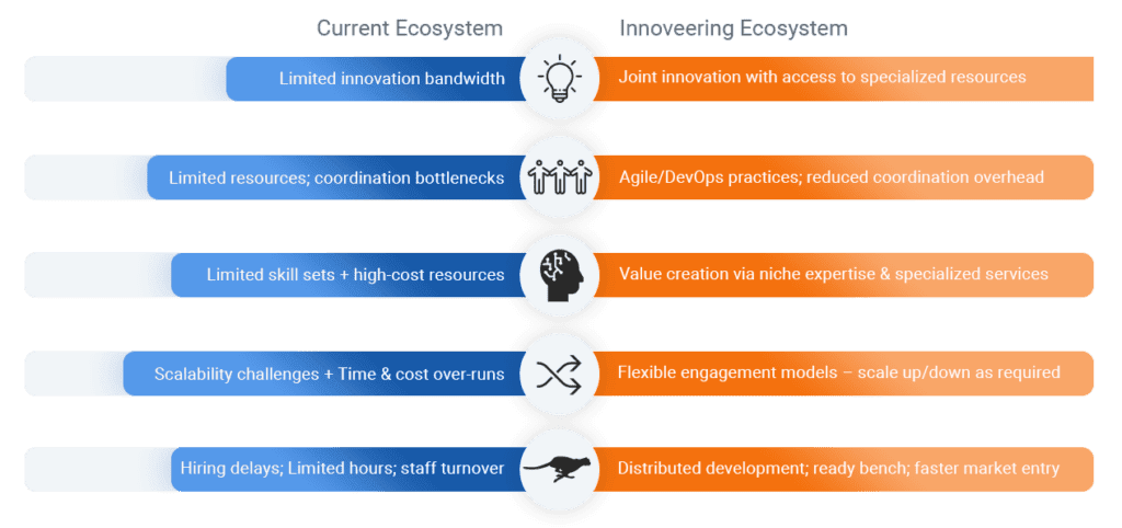 Ambit serves as a strategic innovation partner for Software, SaaS, and FinTech companies, enabling them to deliver exceptional solutions through Agile and DevOps frameworks with our specialized Innoveering Service. As a trusted solutions partner, we go beyond traditional support by developing tailored accelerators to bridge product gaps and meet evolving market demands.
