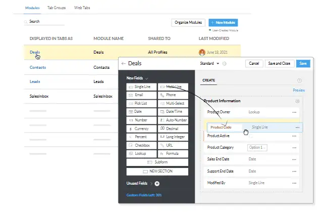 Zoho CRM is designed to grow with your business. It offers extensive customization options for modules, fields, and workflows, ensuring it aligns with your unique business requirements. As your organization expands, the platform easily integrates with other Zoho products and third-party tools to scale operations.